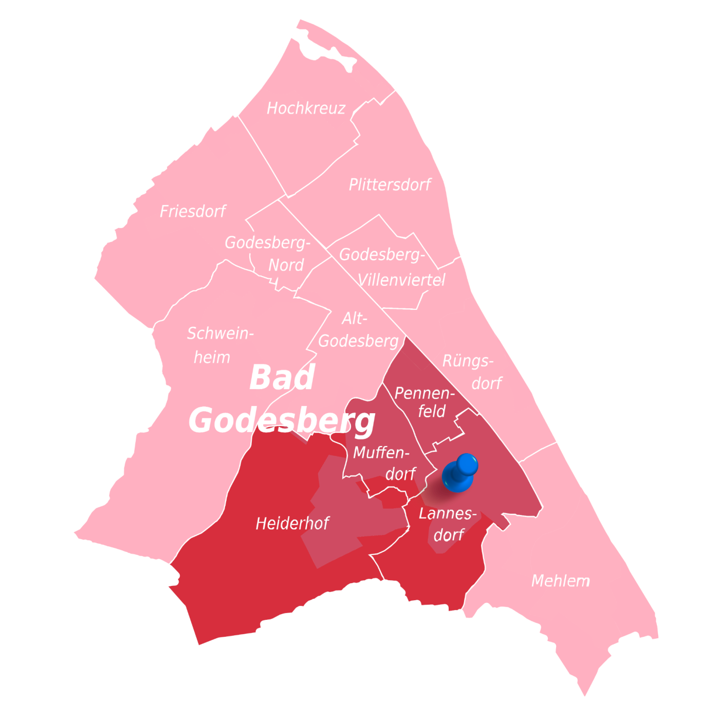 Unser Einzugsbereich sind die Ortsteile Pennenfeld, Muffendorf, Heiderhof und (natürlich) Lannesdorf (siehe Karte unten).